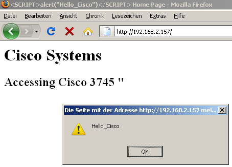 evil-router(config)#hostname <SCRIPT>alert("Hello_Cisco")</SCRIPT>